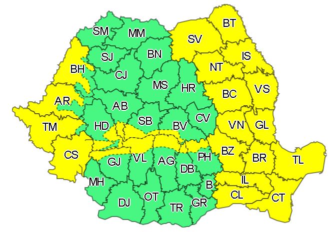 Meteorologii au emis o atenţionare Cod galben de vânt puternic valabilă pe parcursul zilei de miercuri, în zone din 27 de judeţe situate în vestul şi estul ţării, printre care și Bacău.