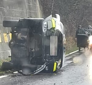 Se pare că carosabilul ud și aliniamentul drumului au decis să dea o mână de ajutor ploii, iar rezultatul a fost o mașină răsturnată. La fața locului au intervenit pompierii ISU și colegii de la poliție, pentru a asigura zona și a readuce vehiculul pe roți. Traficul a fost temporar dirijat și restricționat, spre ușurarea nervilor șoferilor care treceau pe acolo.
